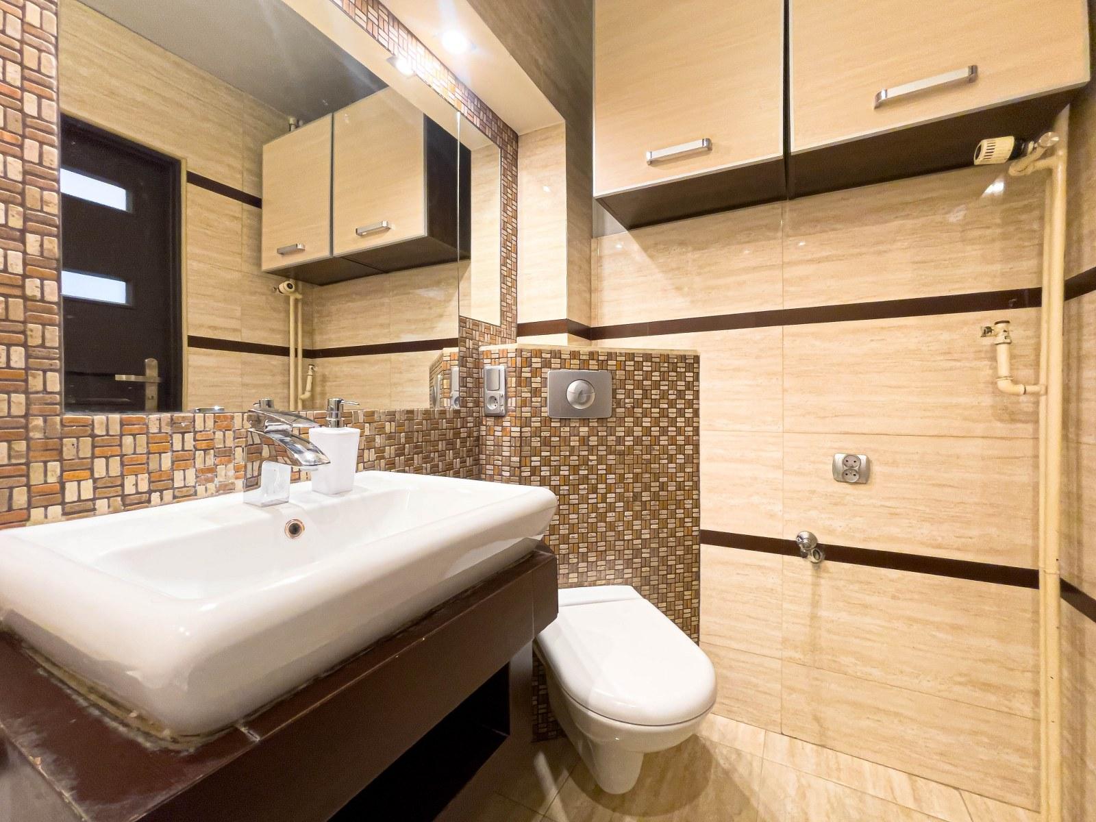 W łazience mamy piecyk gazowy Junkers, który służy do podgrzewania wody. Wszystkie okna w mieszkaniu są drewniane.
